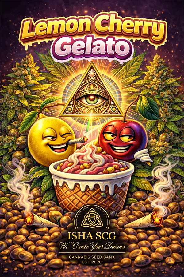 Lemon Cherry Gelato ISHA SCG is a refined, modern hybrid prized for its vibrant flavor profile, eye-catching coloration, and balanced yet powerful effects. This cultivar merges dessert-style sweetness with sharp citrus notes, offering a sensory-forward experience designed for premium seed bank collections.